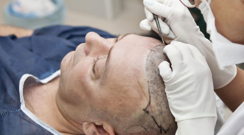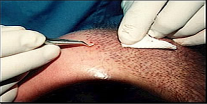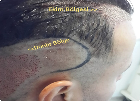 *LOKAL ANESTEZİ “donör bölgesinin uyuşturulması”: Yüzüstü yatırılan hastanın, tüm kafa bölgesi batikon ile dezenfekte edilir. Donör bölge (genellikle arka iki kulak arasında kalan ense kısmı) greft toplanması sırasında herhangi bir acı hissetmemesi için lokal anestezi ile uyuşturulur. Çok ince uçlu iğneler yardımıyla yapılan lokal anestezi sırasında hasta hafif bir ağrı hissedebilir.